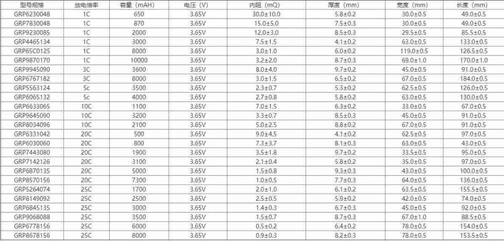 格瑞普磷酸鐵鋰電池型號參數(shù)